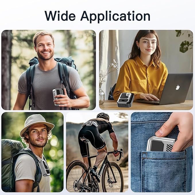 4-in-1 Portable Waist Fan Hands-Free Waist Clip for Work Outdoor Travel (Grey)