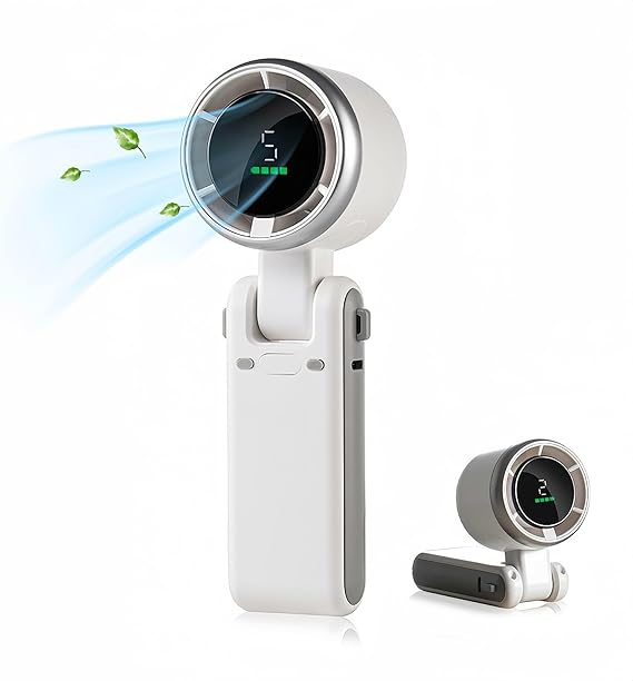• Powerful Cooling with Advanced Motor This personal mini fan is equipped with a turbine structure and a high-performance 3-phase brushless motor, reaching a rotation speed of up to 13,550 RPM. It features a multi-stage pressurized airflow system that quickly compresses and cools down the hot air, providing a powerful wind speed of up to 9ms for effective cooling during hot summer days.
