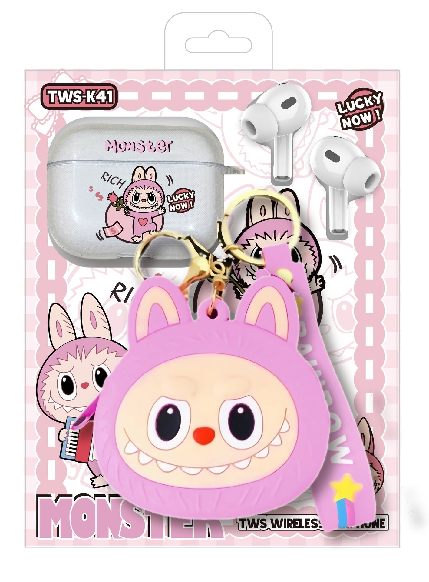 Labubu Design Airpods Pro Blutooth+ Airpod case+ Labubu keychain  Design Airpods Pro Blutooth+ Airpod case+ Labubu keychain