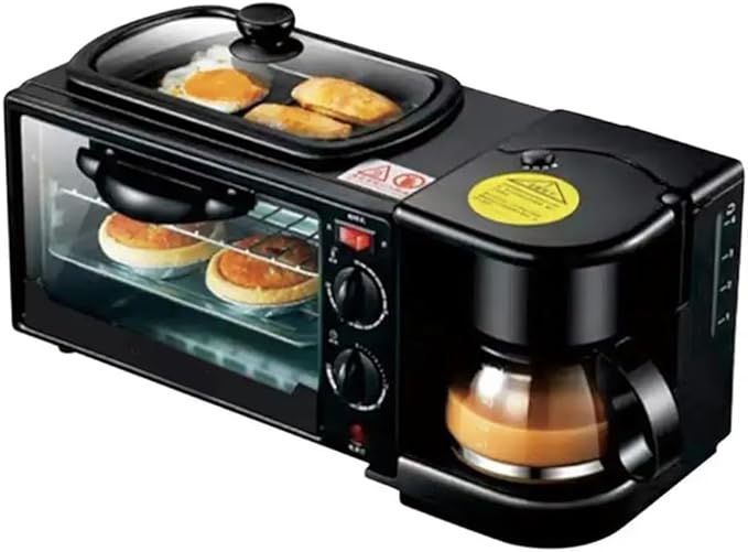 • All-in-One Breakfast Solution: Combines an oven, top tray, and coffee maker in one compact appliance.