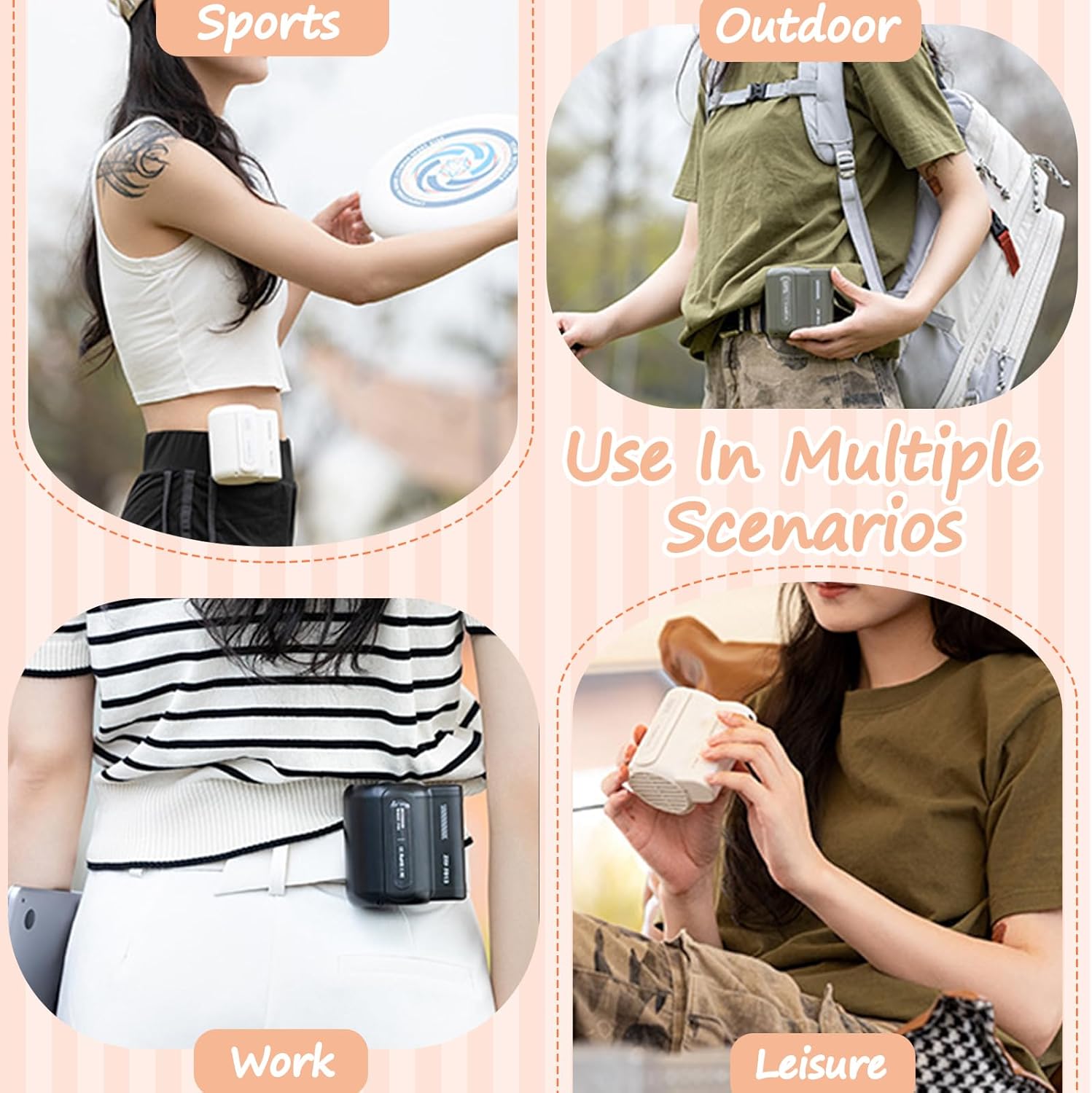 Product DescriptionCool Clip Fan Under ShirtThe Cool Clip Fan is designed with a waist clip, allowing you to easily attach it to your belt or clothing. You can keep your hands free to work, play, or carry out any other activities while enjoying the refreshing airflow provided by the Cool Clip Fan. Wear On The ChestSide Hanging WearWear On The BackHandheld FanAdjustable Wind SpeedThe belt clip fan is not only portable but also adjustable. Small Portable Fan's multi -gear speed design provides you with more different wind speed options.